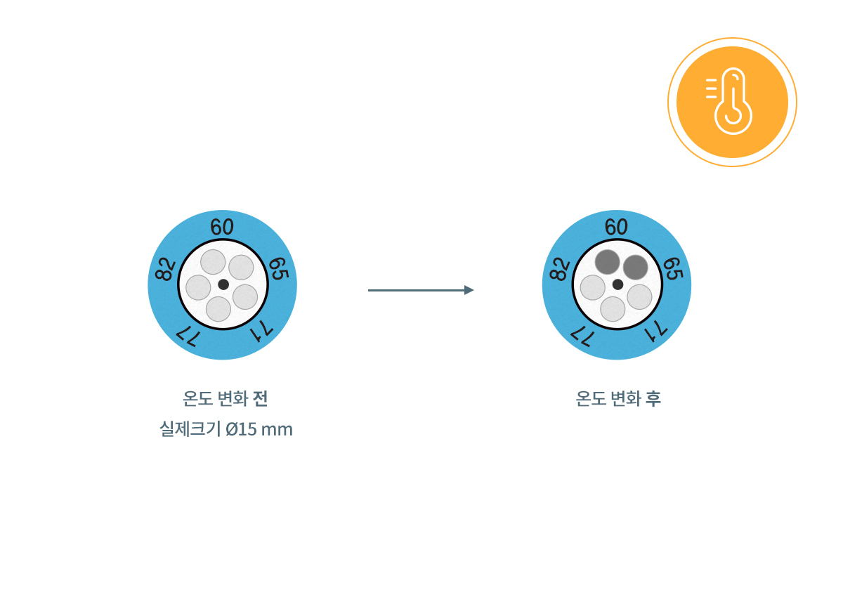 특정 온도가 넘으면, 온도 테이프는 2~3초 안에 색이 변합니다.
