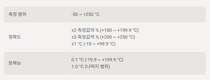 최대 +250℃까지 측정 가능