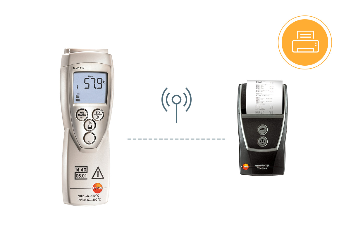테스토 고속 프린터(옵션-제품번호 0554 0549)를 이용하면 측정 데이터를 현장에서 실시간으로 출력할 수 있습니다. 측정기를 켠 시점부터 최대값과 최소값도 함께 출력할 수 있습니다.