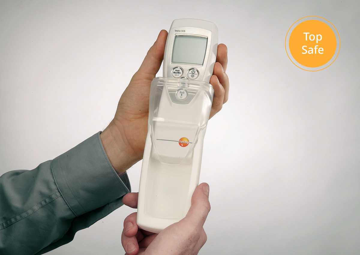 측정기에 보호케이스(TopSafe – 옵션) 장착 시 IP65의 보호등급을 확보할 수 있습니다. 식품을 측정하다 오염되는 경우에도 보호케이스만 세척하면 됩니다.
