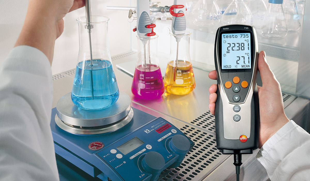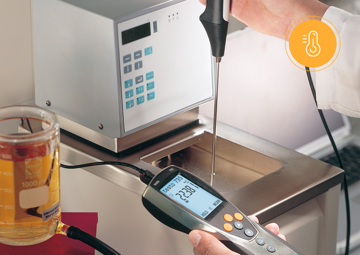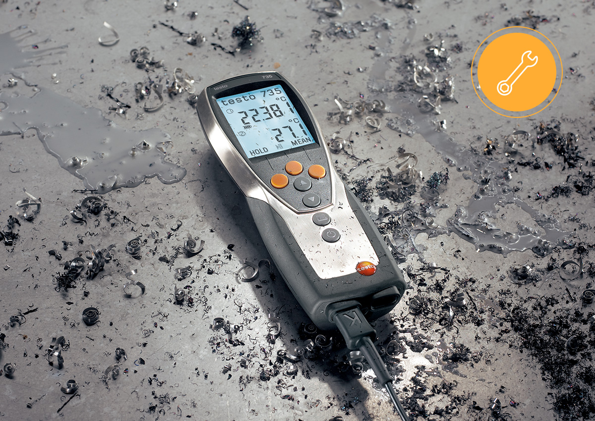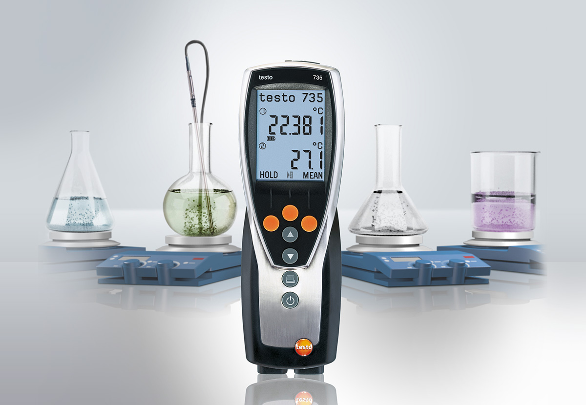 심부 온도, 표면 온도, 대기 온도 등 여러 지점의 온도를 동시에 측정해야 한다면, 기준급 온도계 testo 735를 추천합니다. testo 735는 고정밀의 측정이 가능한 Pt100 센서 1개와 열전대 센서 2개를 연결해 측정을 수행할 수 있습니다.