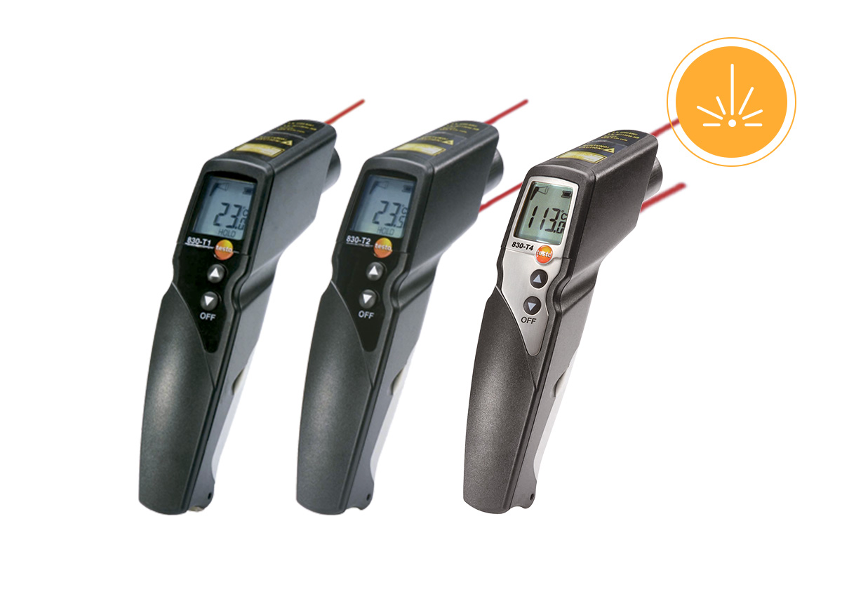 레이저 포인터 표시 기능은 측정 지점을 명확하게 확인할 수 있도록 도와줍니다. testo 830-T1은 1포인트 레이저, testo 830-T2와 testo 830-T4는 2포인트 레이저 기능을 지원합니다.