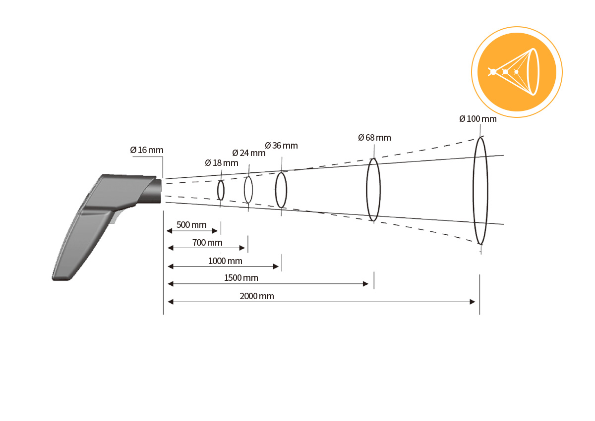 최대 30:1의 초점비로 원거리에서도 정확한 측정