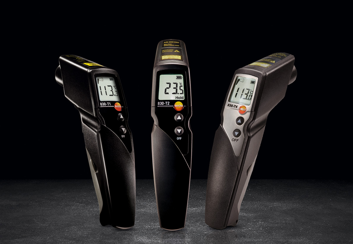 적외선 온도계는 표면 대상에 따른 방사율 설정이 중요합니다. testo 830-T2와 testo 830-T4는 외부 온도 프로브를 연결하여 접촉식 측정 데이터와 적외선 측정 데이터를 비교함으로써 측정대상의 정확한 방사율 값을 확인할 수 있습니다.