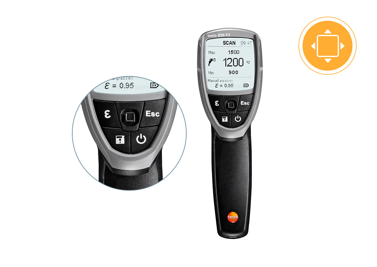 적외선 온도계 testo 835 시리즈는 직관적인 4개의 버튼과 조이스틱으로 누구나 쉽게 사용할 수 있습니다.