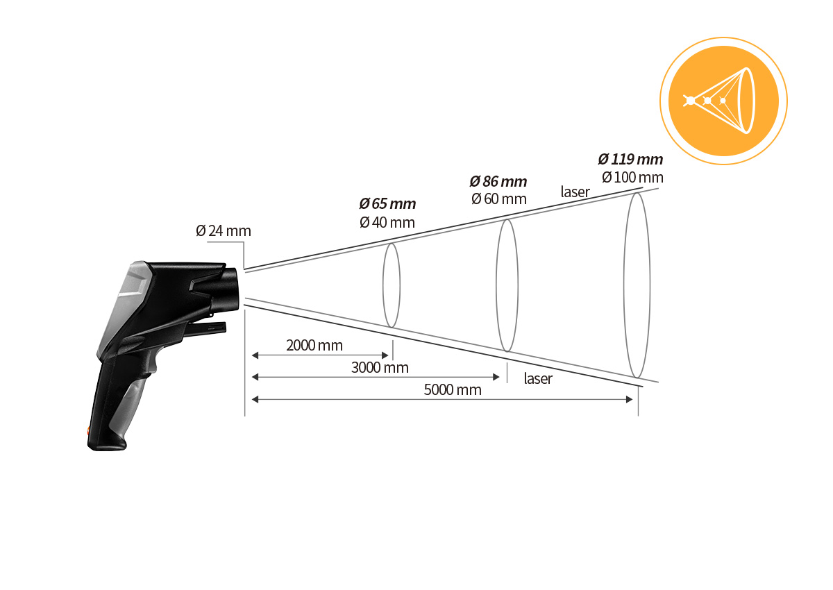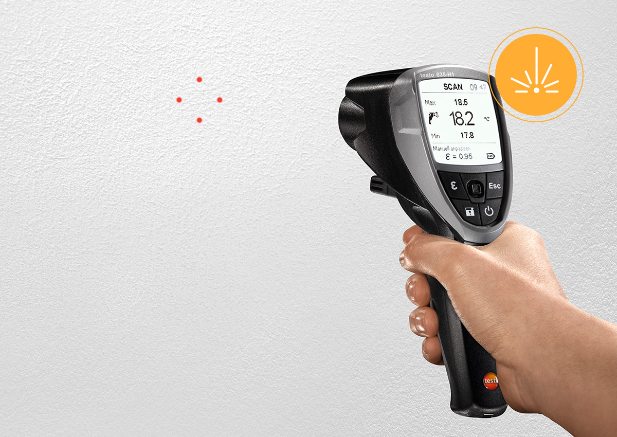 산업용 적외선 온도계 testo 835 시리즈는 50:1의 초점비로 원거리에서도 정확한 측정이 가능합니다.