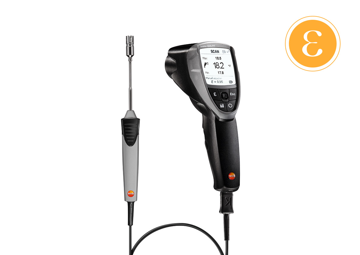 적외선 온도계는 표면 대상에 따른 방사율 설정이 중요합니다. testo 835 시리즈는 외부 온도 프로브를 연결하여 접촉식 측정 데이터와 적외선 측정 데이터를 비교함으로써 측정대상의 정확한 방사율 값을 확인할 수 있습니다.