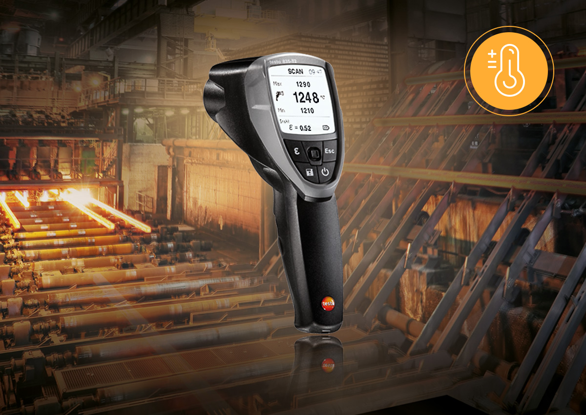산업용 적외선 온도계 testo 835는 최대 1,500℃의 고온 측정이 가능합니다. 철강, 유지, 세라믹 산업 등 고온 측정이 필요한 산업현장에서 안정적인 사용이 가능합니다. (testo 835-T2만 해당)