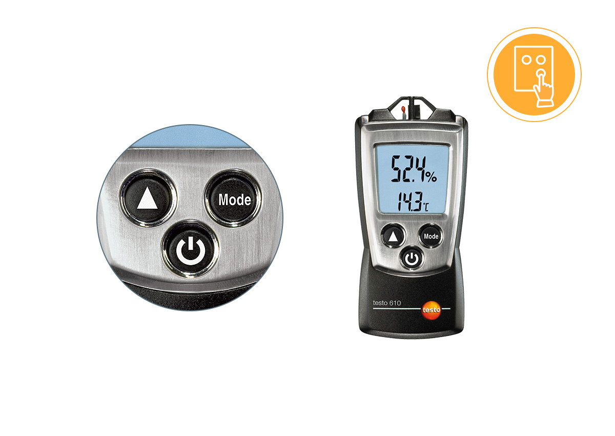 포켓사이즈 온습도계 testo 610은 한 손에 들어오는 크기로 산업현장에서 간편하게 대기 온도와 습도를 측정할 수 있습니다.