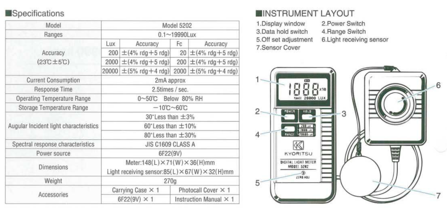 • 낮은 조도부터 높은 조도까지 레인지 전환 (200 / 2000 / 20000 Lux)