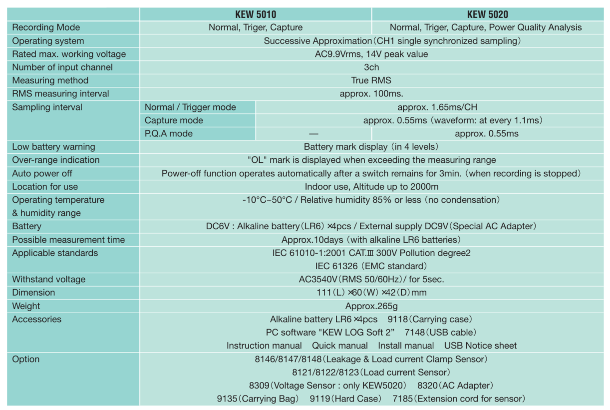 • 전류, 전압의 기록 및 해석을 위한 PC 소프트웨어 지원