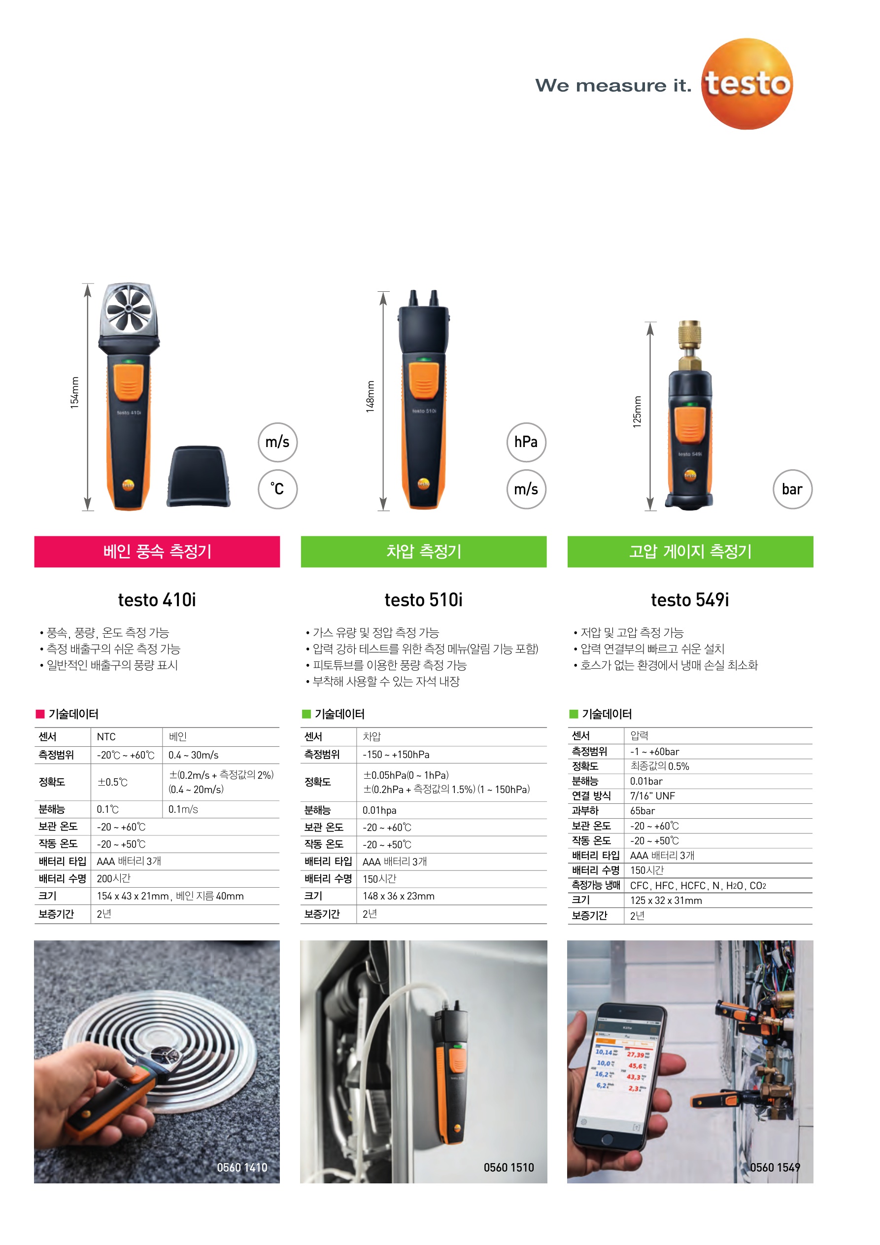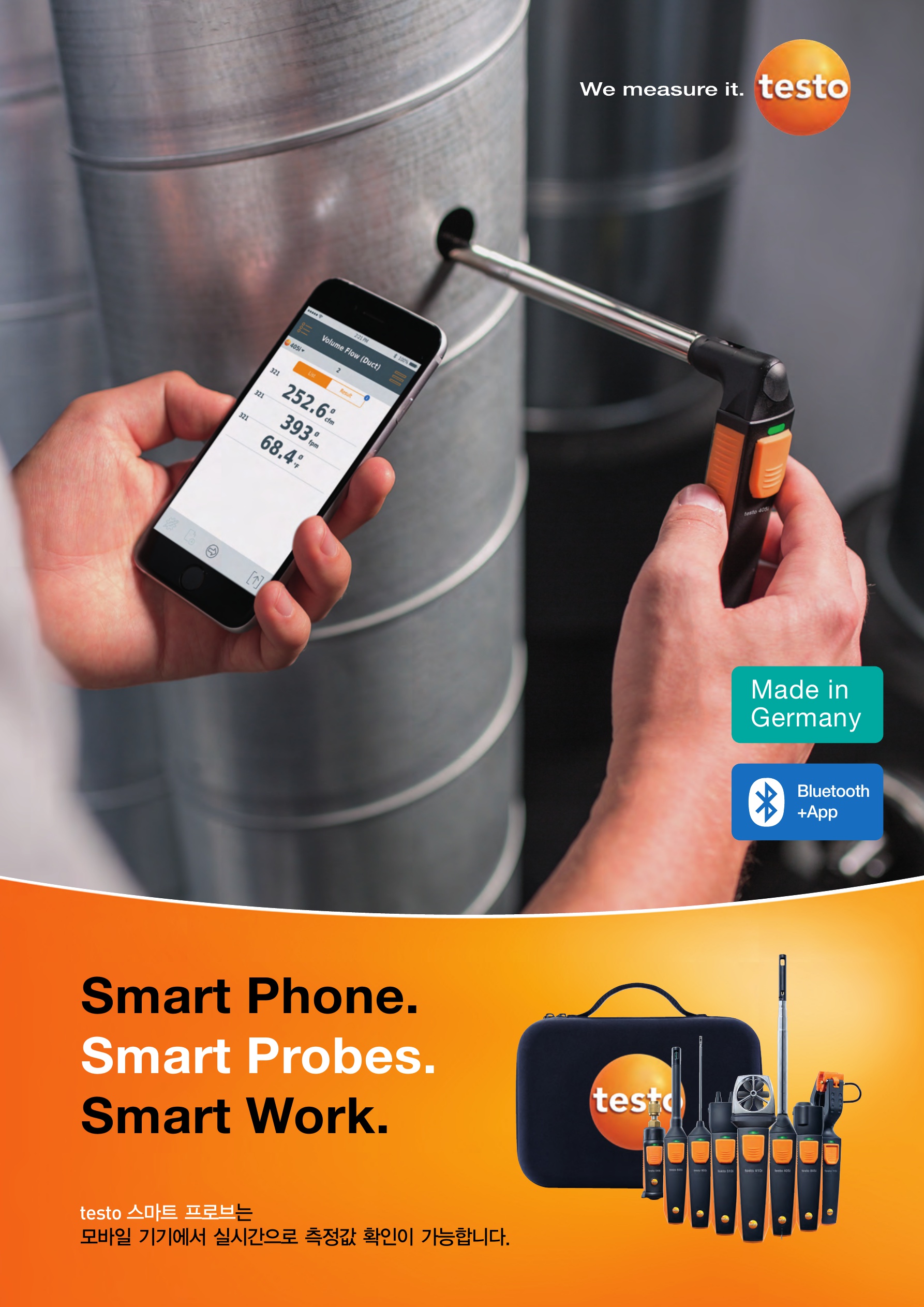 누구나 testo Smart App(앱)을 이용해 스마트폰, 태블릿 PC 등 스마트 기기에서 측정값을 읽을 수 있습니다. 즉 안드로이드 또는 iOS 스마트 기기를 이용해 측정을 수행할 수 있습니다.