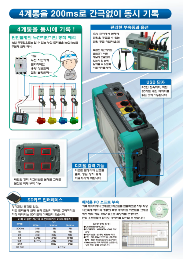 • 일반 누설 전류 및 부하 전류 모두 측정 가능