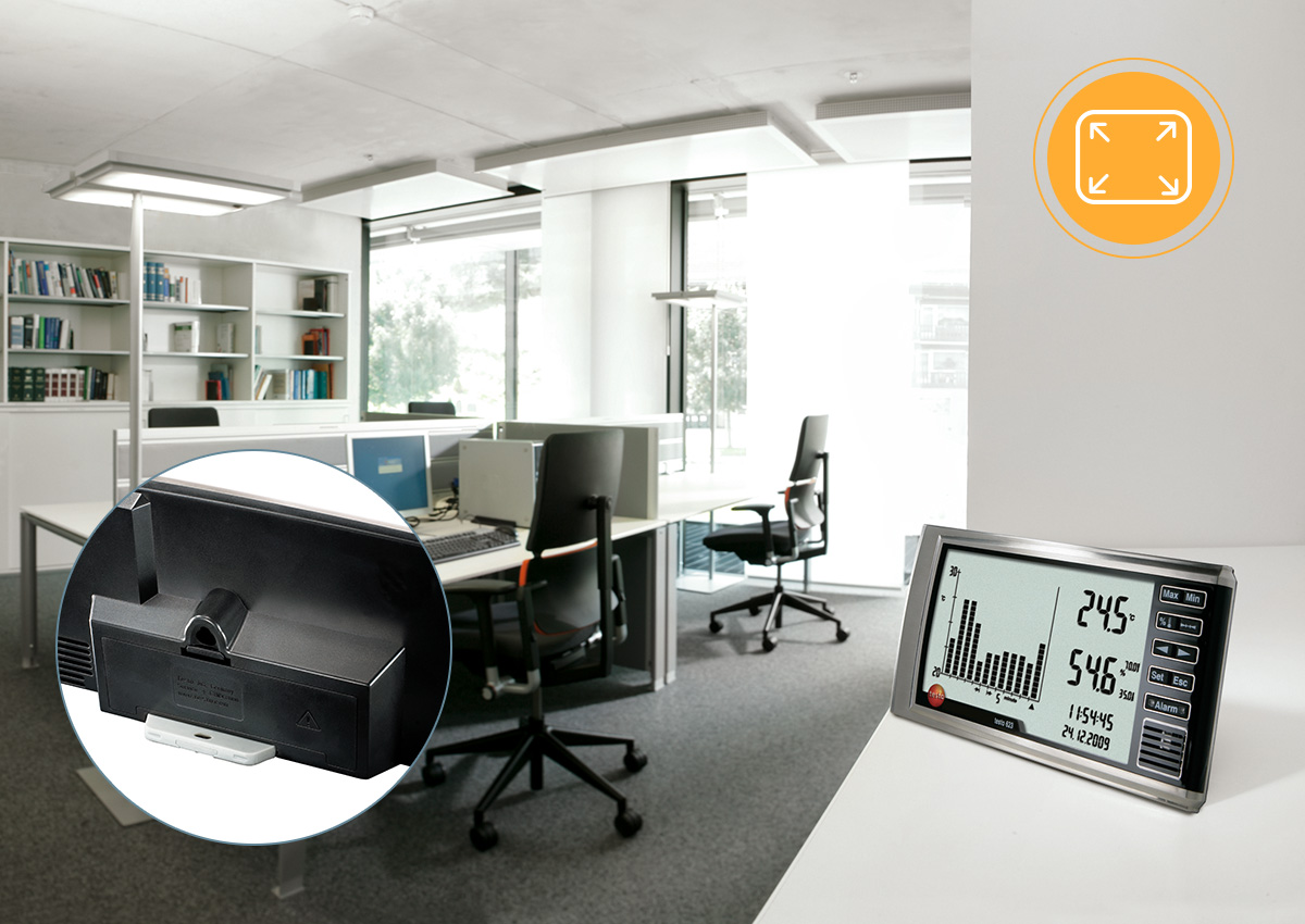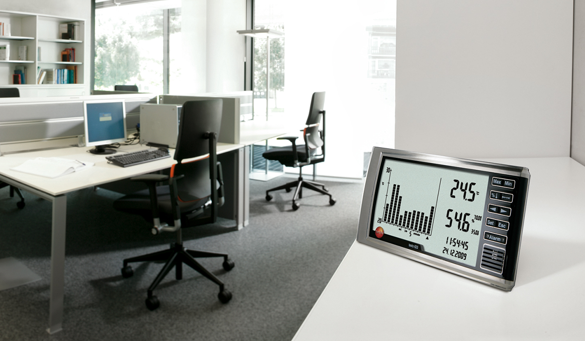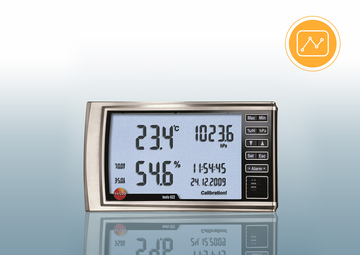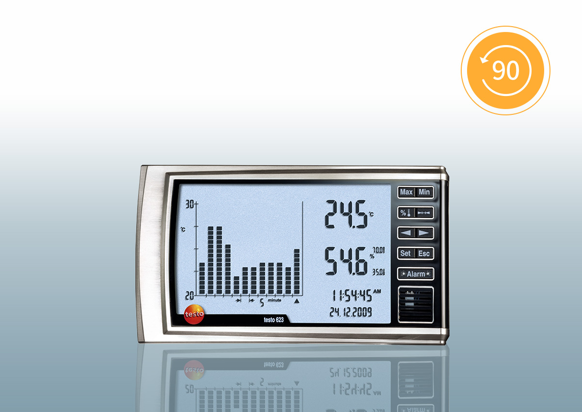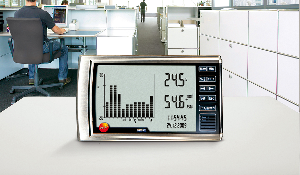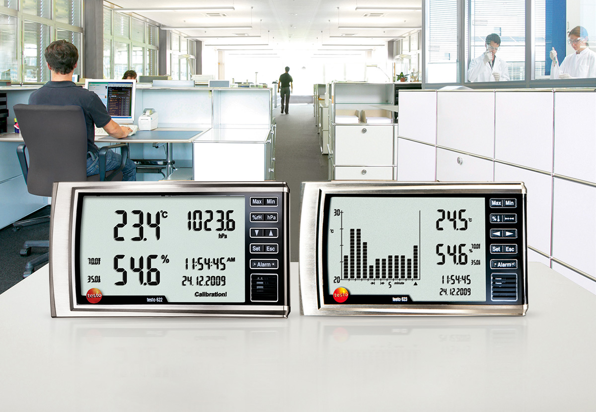 온도, 상대습도, 압력 등을 한 눈에 확인할 수 있는 실내공기 관리용 온습도계 testo 622