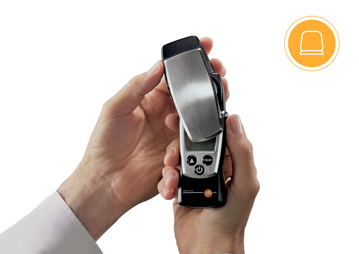 대기 중 온도와 습도를 측정할 수 있는 센서가 장착되어 있습니다. 이는 재료가 건조되는 대기조건을 빠르고 정확하게 확인하는 데 도움이 됩니다. (testo 606-2만 해당)