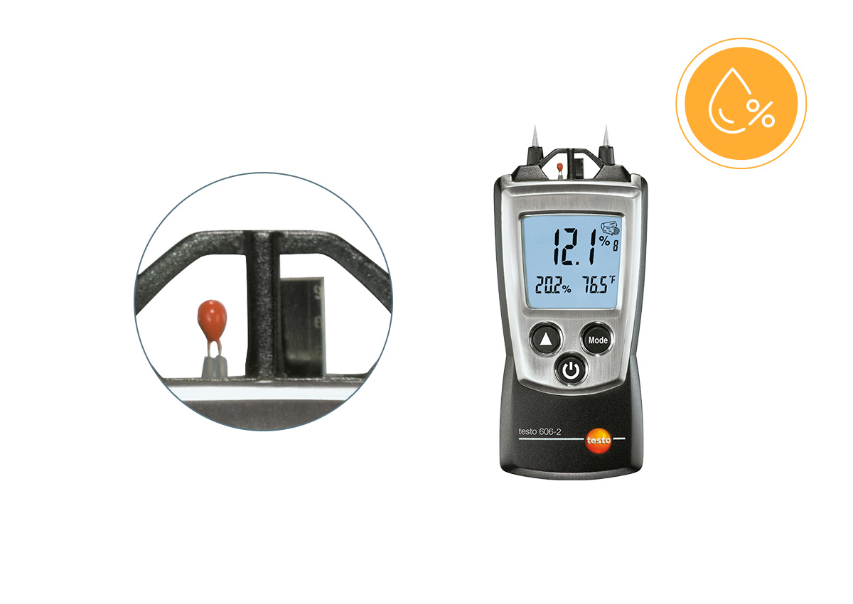 나무, 벽 등의 수분 함량을 전문적으로 측정하면서도 아주 작은 사이즈로 간편함을 더한 재료수분 측정기 testo 606-1.