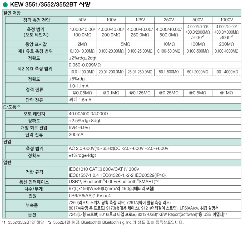| • 절연 저항 6 레인지 (50 / 100 / 125 / 250 / 500 / 1000V) / 최대 40GΩ |