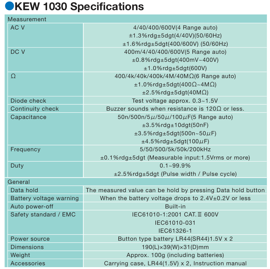 | · 저항을 포함한 모든 레인지가 600V의 과전압에도 보호 |