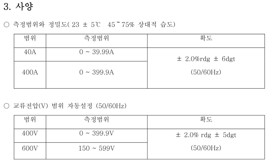 | • AC 40A/400A 2 레인지 |