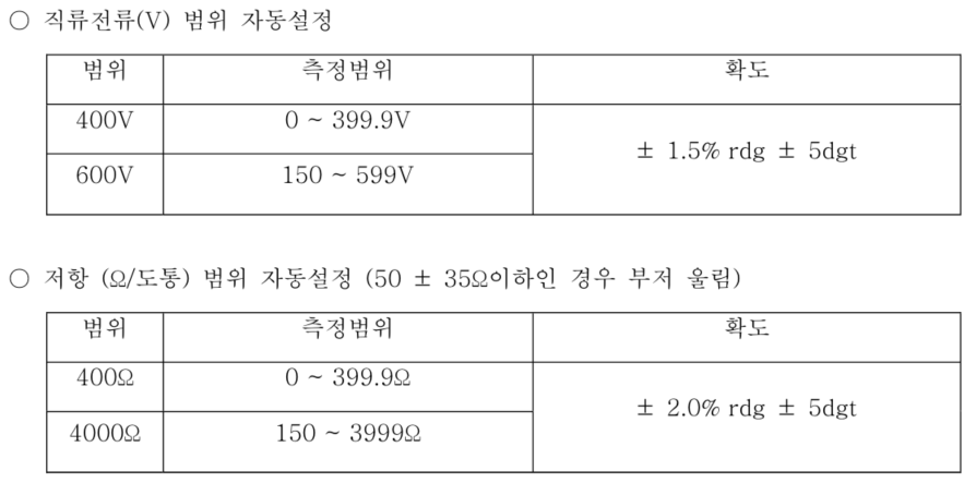 | • AC/DC 400V/600V 전압 측정 |