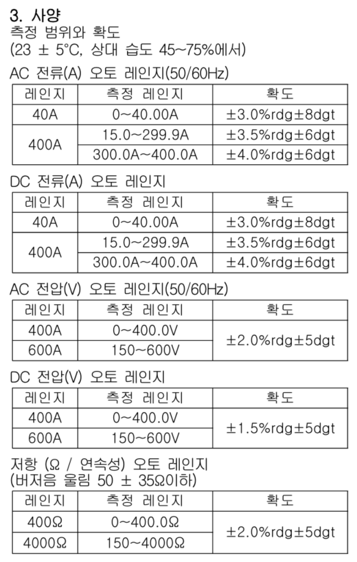 | • 최대 측정 전류 AC/DC 400A |