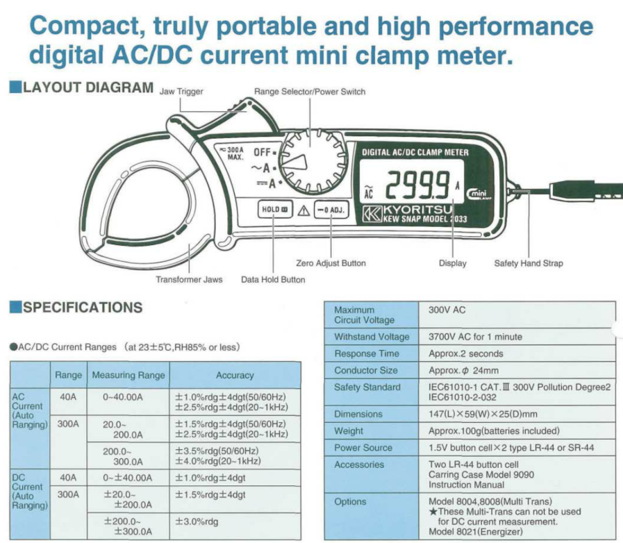 | • 최대 측정 전류 AC/DC 300A |