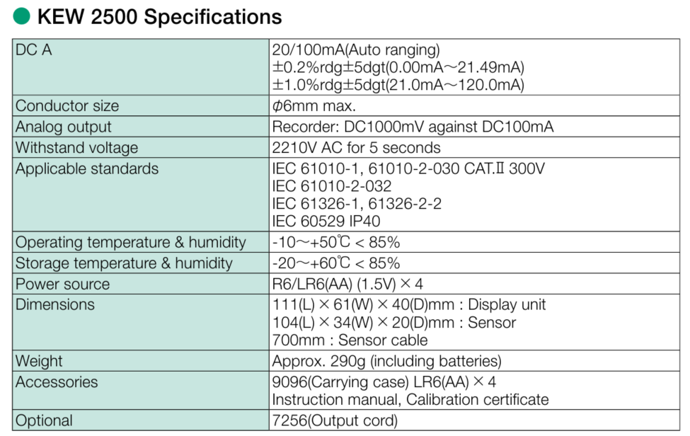 | • 측정 범위 : DC 0.01mA~120.0mA |